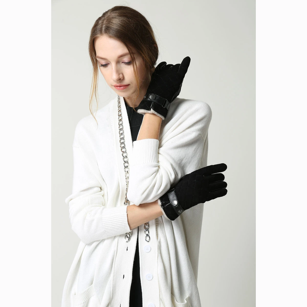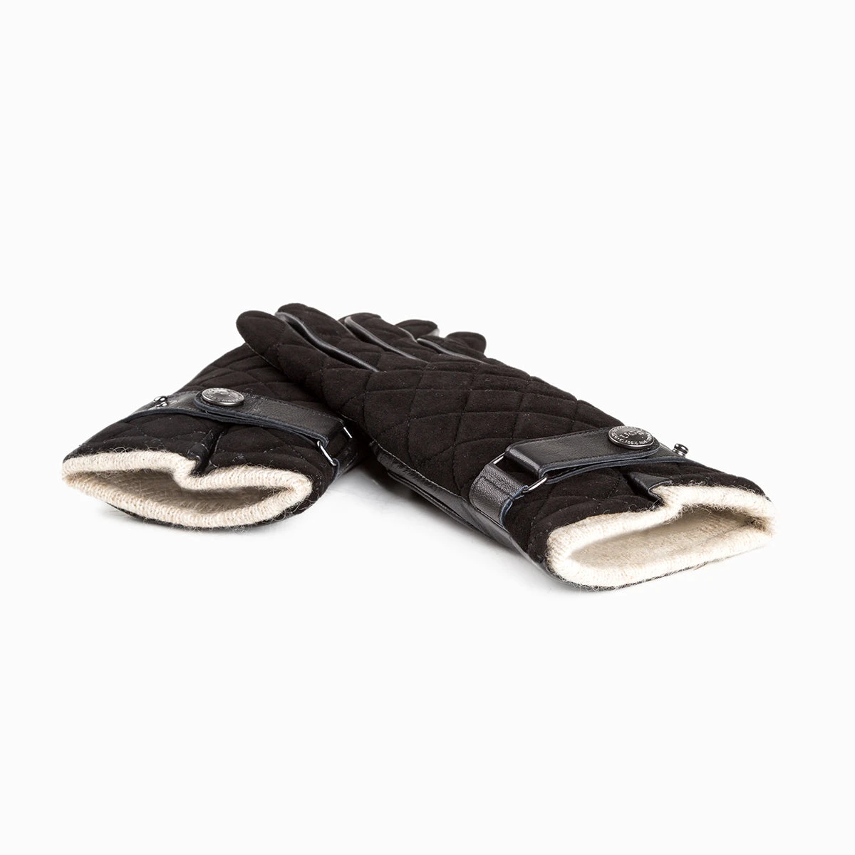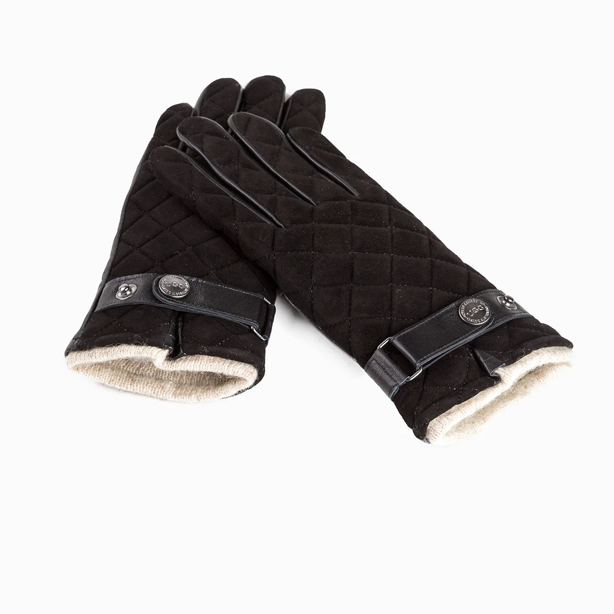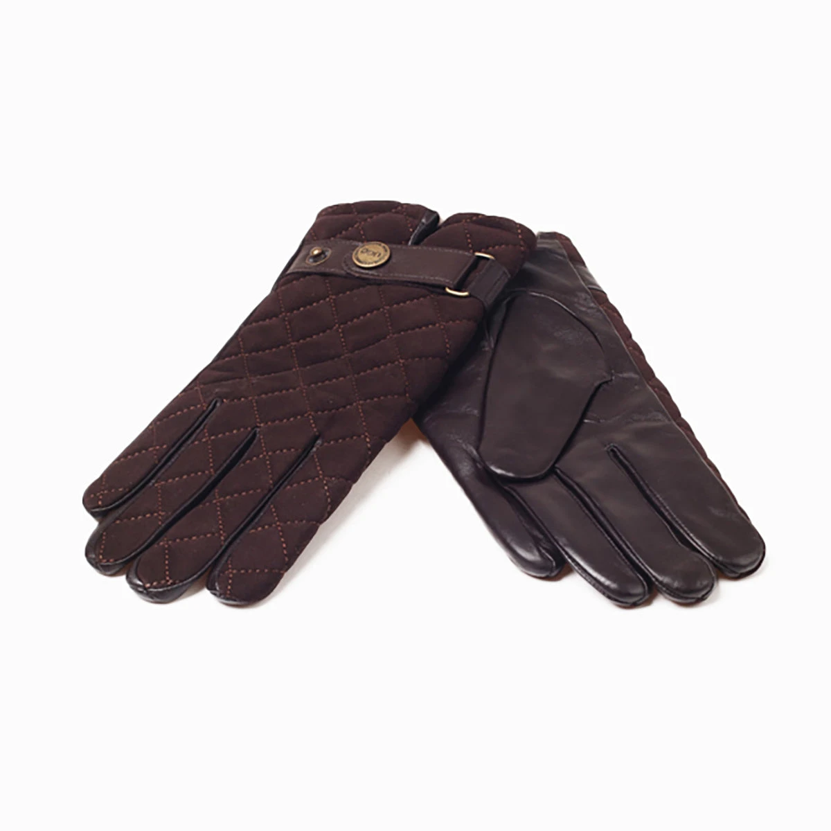 soft leather quilted gloves with stud wrist strap design.