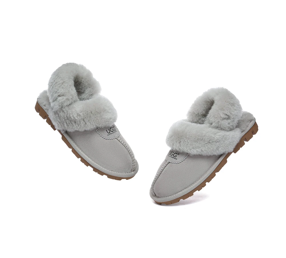 AUSTRALIAN SHEPHERD® UGG Slippers Women Removable Wool Fluffy Strap Slingback Waffle #AS2076
