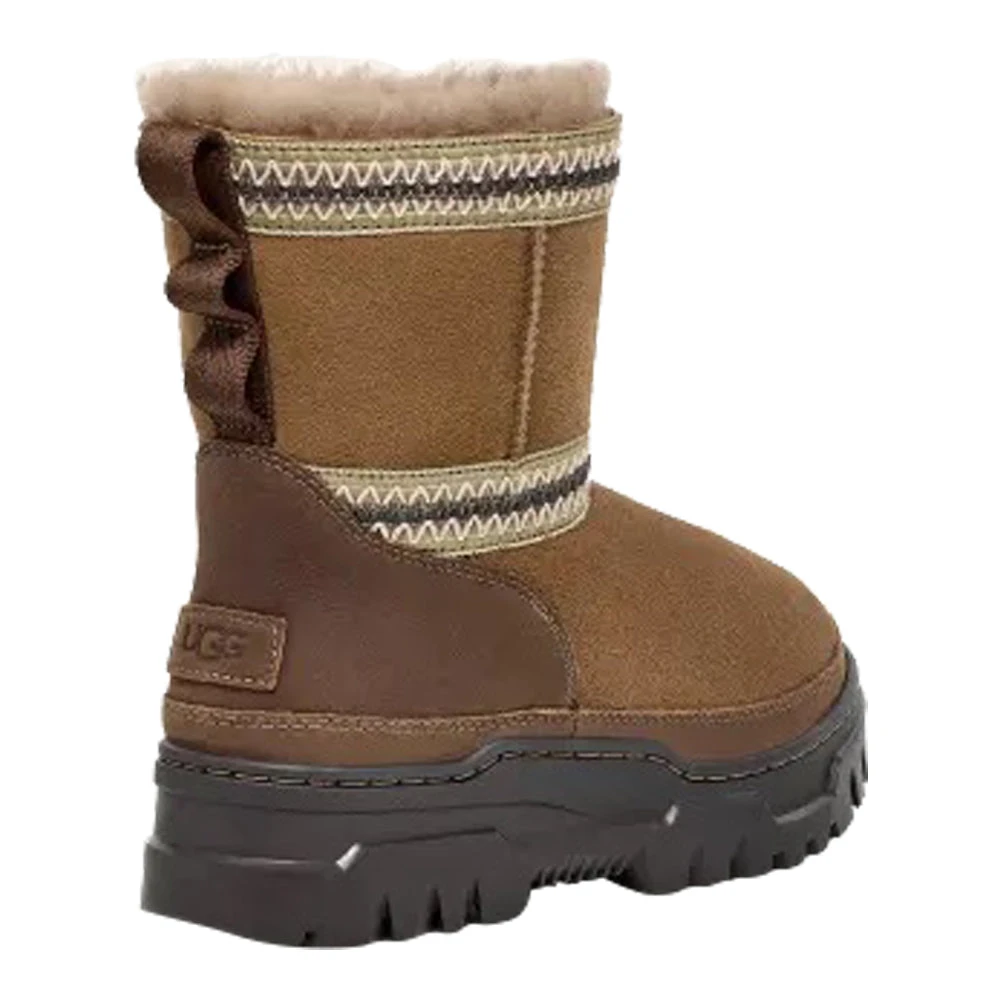 - Rear pull tab made from 100% recycled polyester fibers, UGGbraid detailing, Suede vamp, Leather mudguard, 17mm Twinface Sheepskin shaft, Leather heel counter